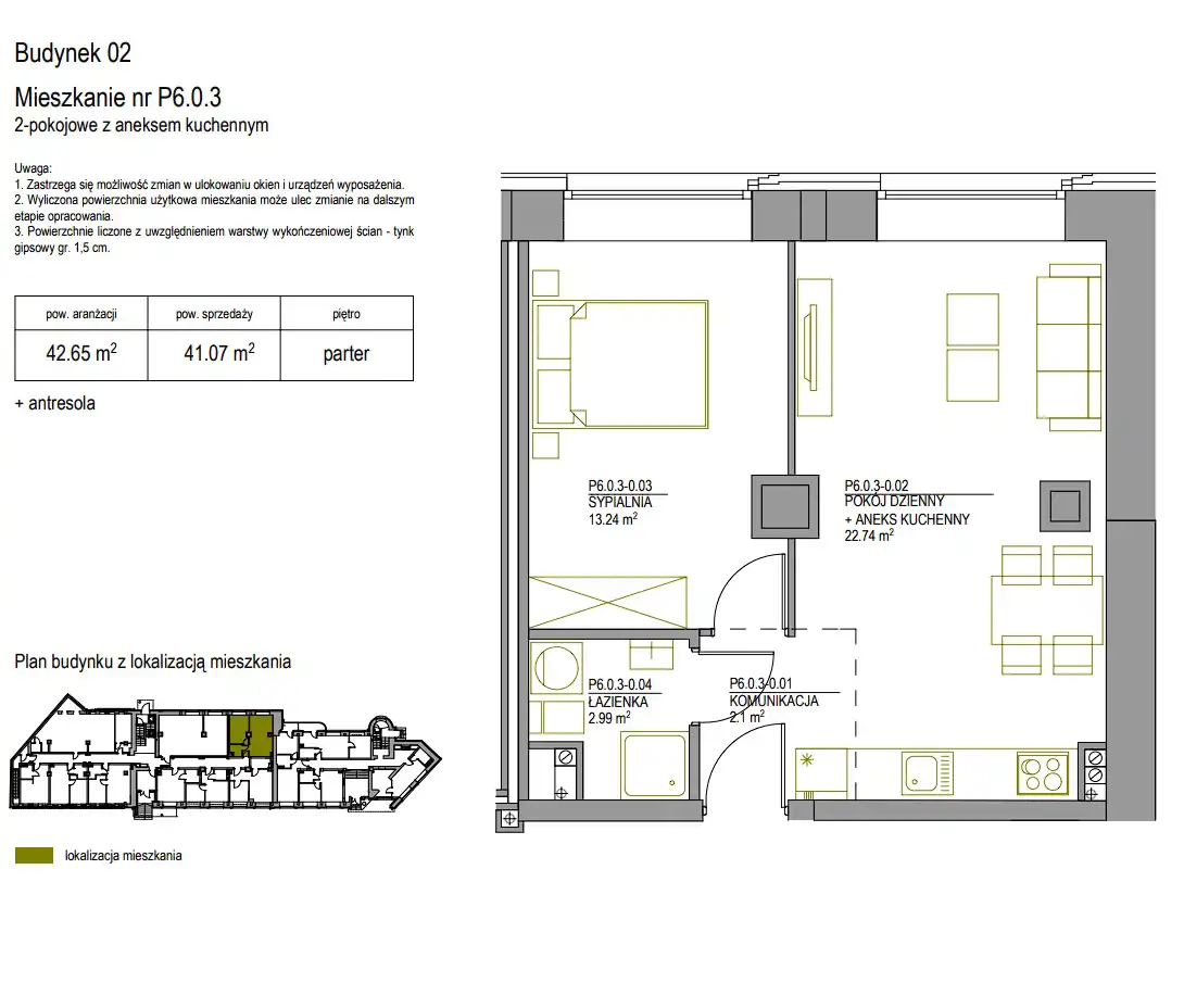 Prezentowane mieszkanie znajduje się na parterze i posiada 40,54 m2.
