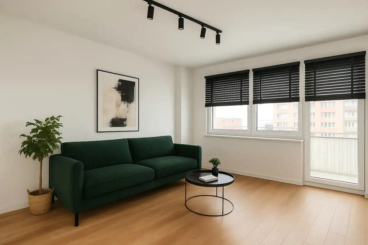 - salon 20 m2 z wyjściem na dużą loggie (zachód)