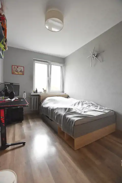 Idealny układ dla rodziny, trzy sypialnie plus salon z oddzielną kuchnią. Dodatkowo podczas remontu pomieszczenie WC przeistoczyło się w pralnie. Remont obejmował to co najważniejsze, czyli instalacje elektryczne, wodno-kanalizacyjne, nowe podłogi-panele, ściany-gładzie. Układ bez zbędnych korytarzy i stary metrów, wygodny w kwadracie z dużą zabudową przedpokój. Pod ręką każdy sklep jaki tereny spacerowe.