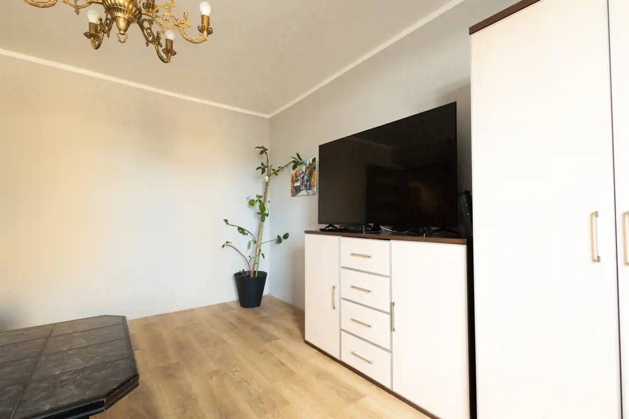 - słoneczny salon z wyjściem na duży balkon – idealne miejsce na poranną kawę z widokiem na spokojną okolicę.