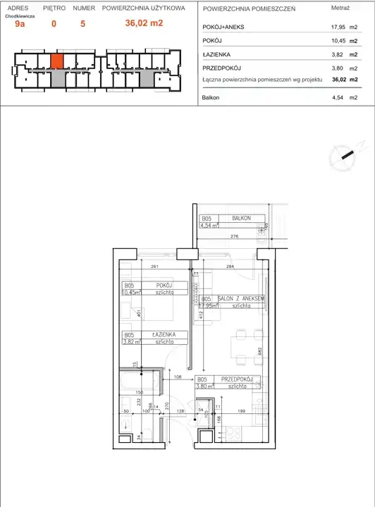 Powierzchnia użytkowa o metrażu 36,02 m² obejmuje: