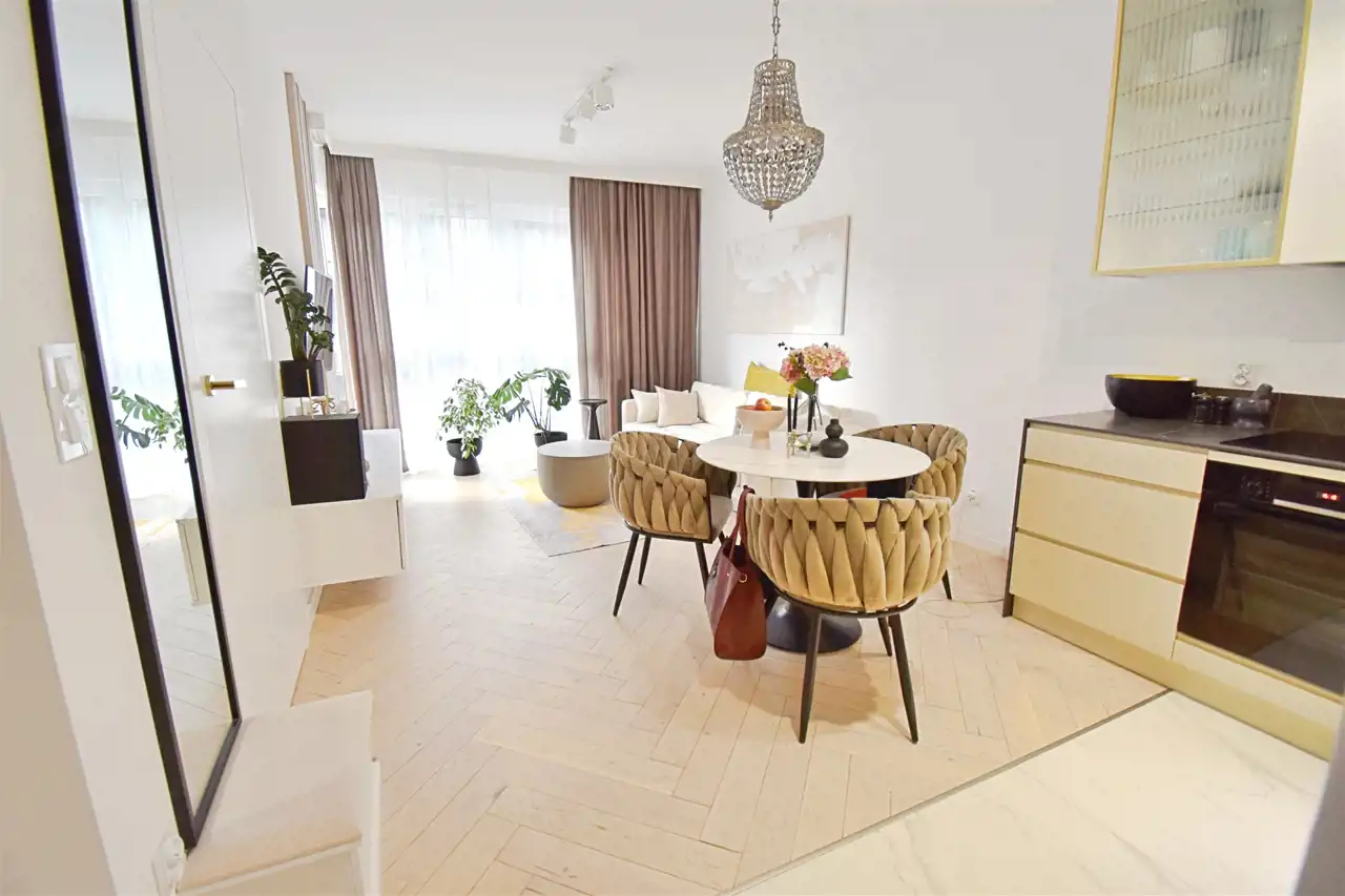 Piękne mieszkanie 2- pokojowe 36 m2 na prestiżowym osiedlu Industria przy ul. Pomorskiej. Wykończone z dbałością o każdy szczegół i optymalne wykorzystanie przestrzeni. Wszystkie meble w zabudowie zostały wykonane na wymiar. Podłogi z drewna, system smartdom oraz wyważona, modna kolorystyka tworzą nowoczesne, piękne i funkcjonalne miejsce do życia.