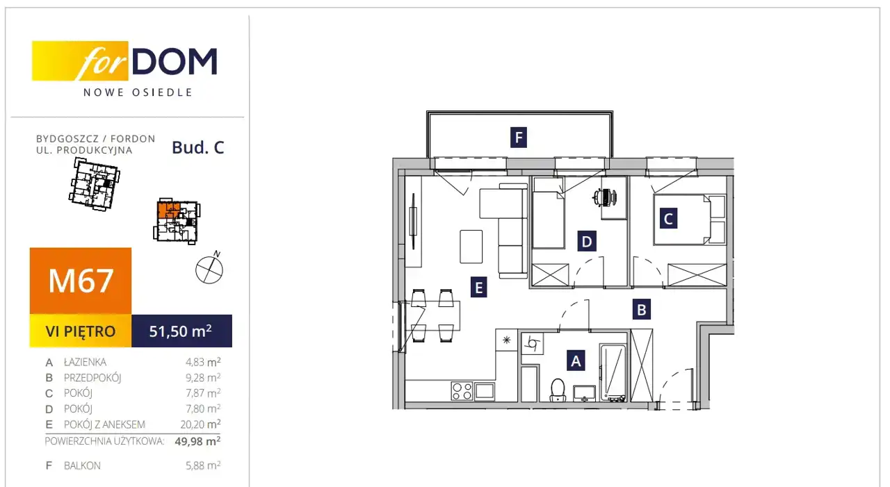 - Charakterystyka mieszkania 49.98 m2, 3 pokoje