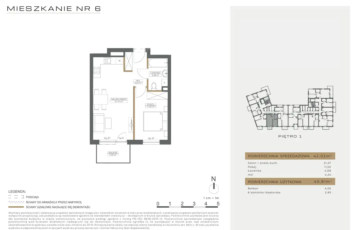 - Charakterystyka mieszkania 42.02 m2, 2 pokoje