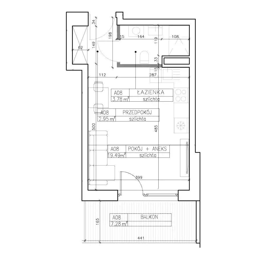 - Charakterystyka mieszkania 27.04 m2, 1 pokój