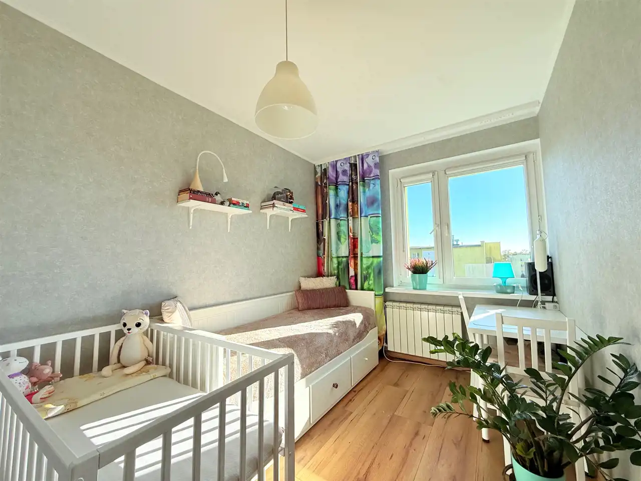 Układ mieszkania pozwala na wprowadzenie zmian w jego funkcjonalności. Możliwość wyodrębnienia jeszcze jednej sypialni, dzięki czemu uzyskamy trzy sypialnie: 12 m2, 12 m2, 9 m2.