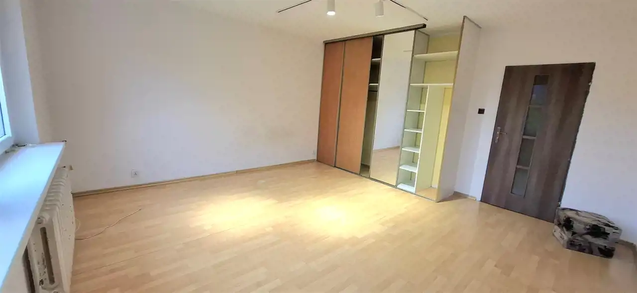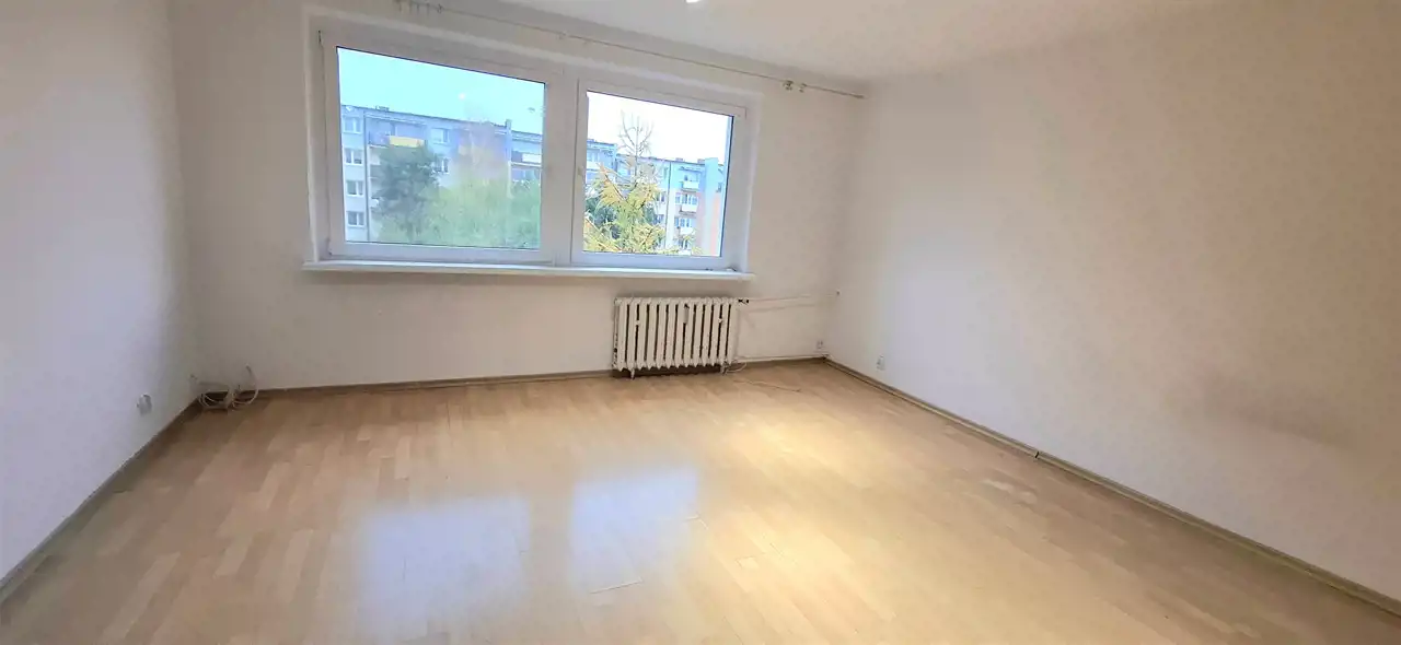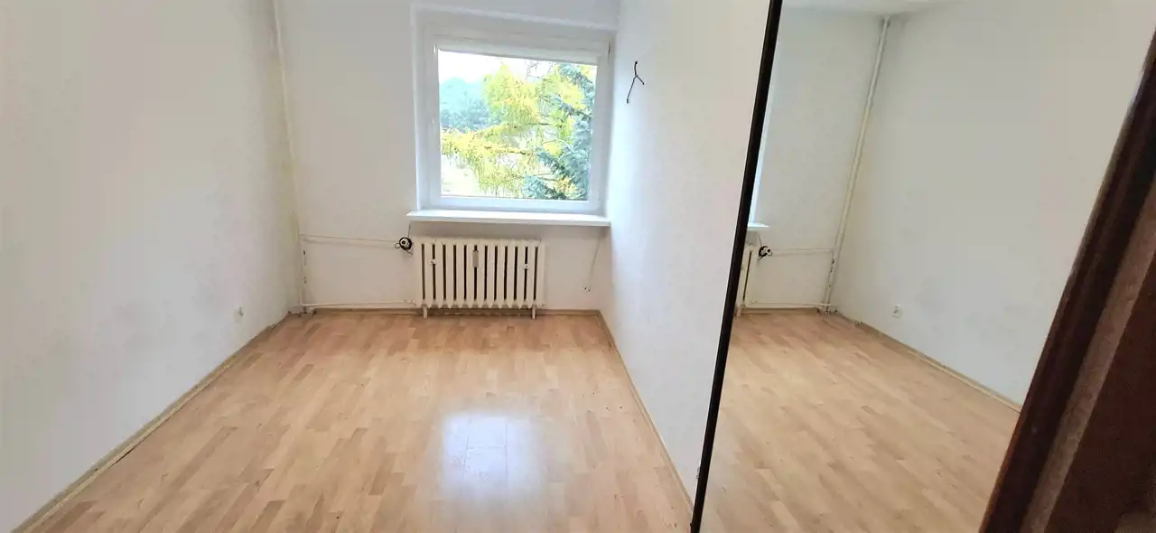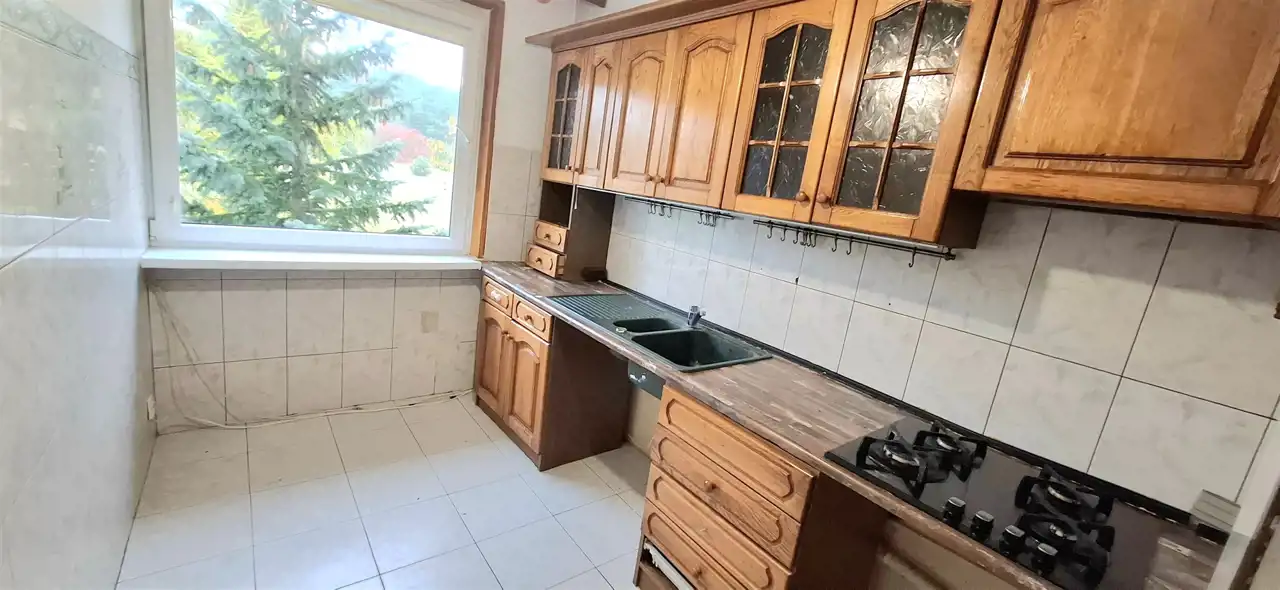 Pokoje duże, słoneczne o powierzchni ok. 22m2 oraz sypialnia 10m2. Kuchnia w prostokącie, kafelki na podłodze i w pasie roboczym (pow. ok. 7,5m2), łazienka o pow. ok. 4m2 również w kaflach z kabiną natryskową. Wc osobno.