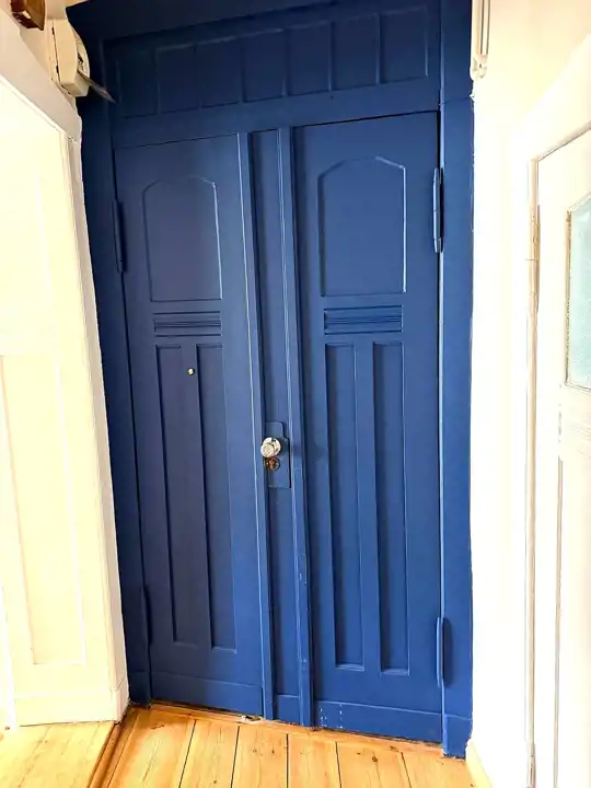 Na podłogach zachowane zostały piękne, drewniane deski, które idealnie wpisują się w charakter kamienicy.