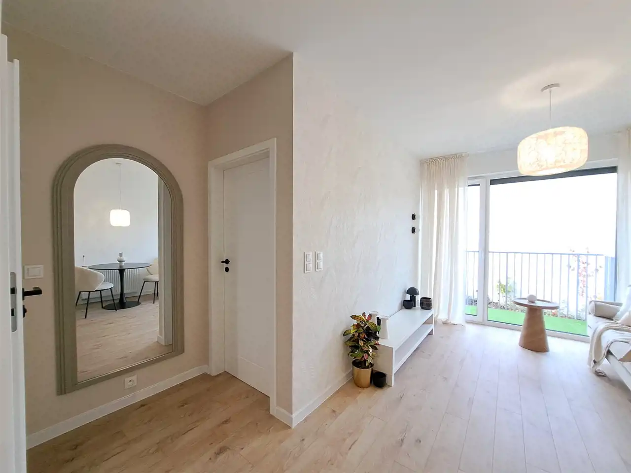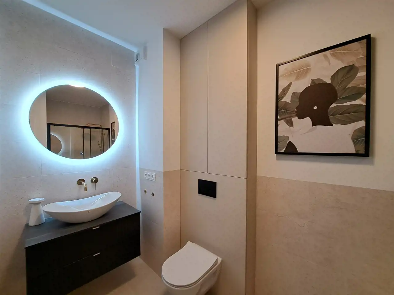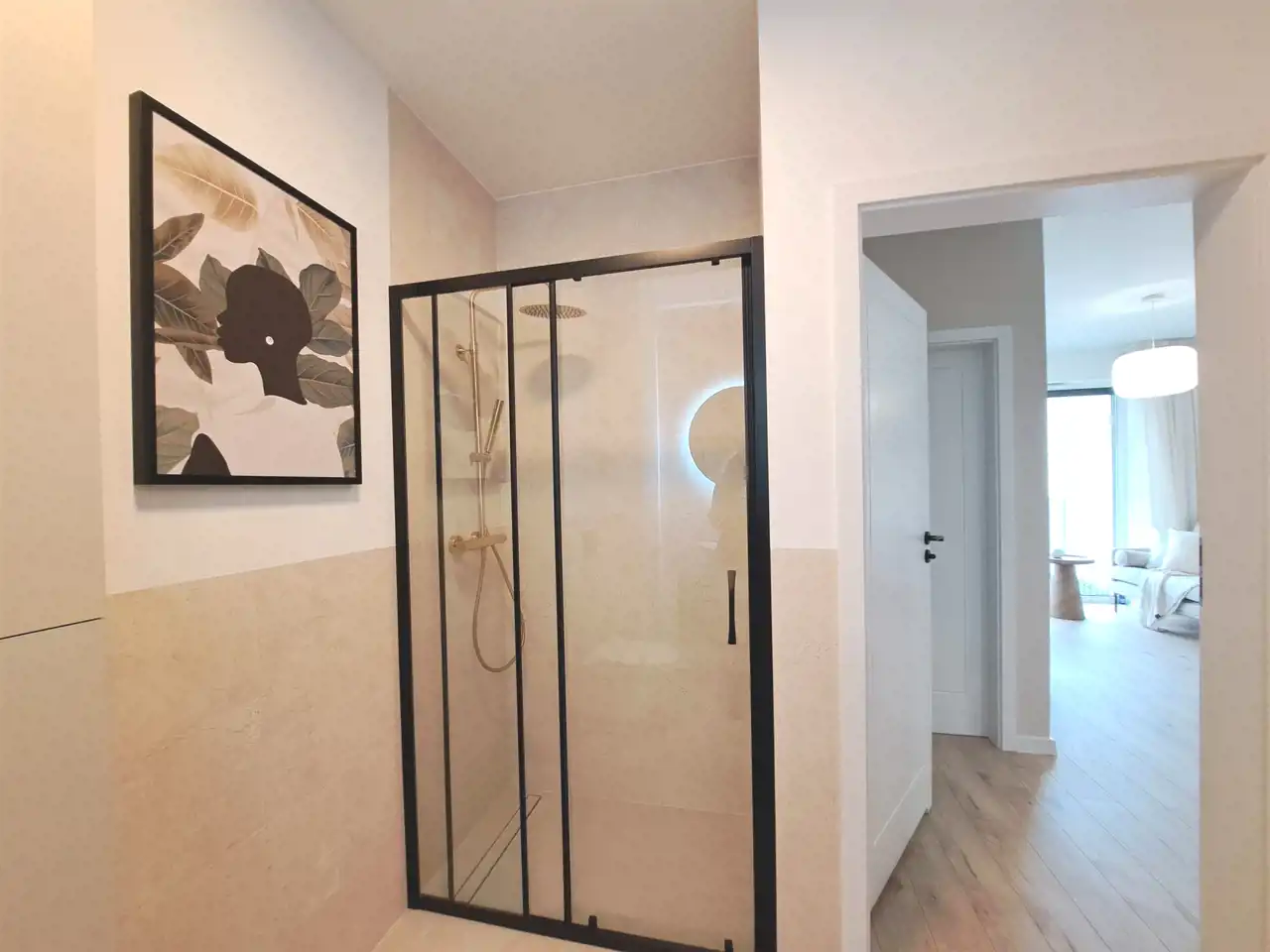 Wnętrze utrzymane jest w jasnych, ciepłych beżach, co tworzy harmonijną i przyjemną atmosferę już od pierwszego kroku. Każdy detal został starannie dopracowany, dzięki czemu mieszkanie emanuje świeżością i elegancją, a jednocześnie pozostaje niezwykle przytulne.