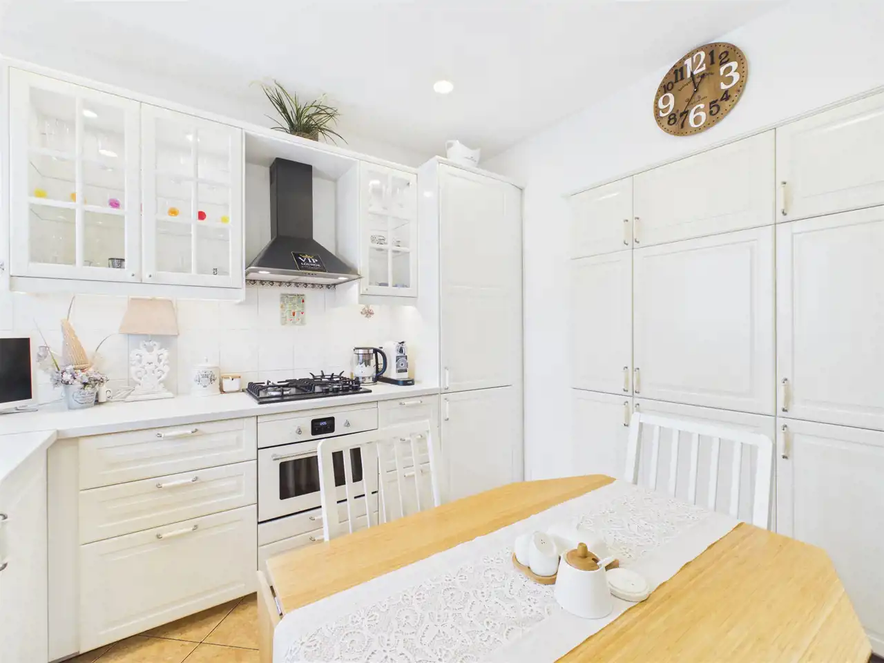 oddzielna kuchnia po generalnym remoncie wyposażona w zabudowę na wymiar i sprzęt AGD,