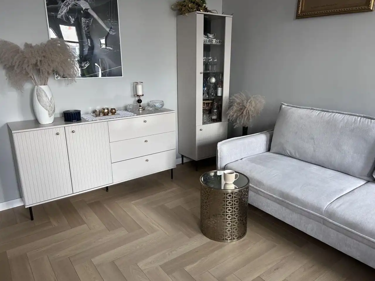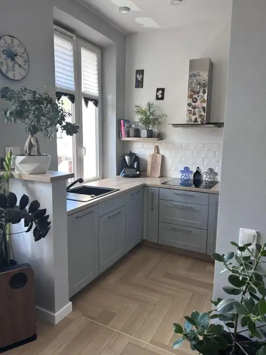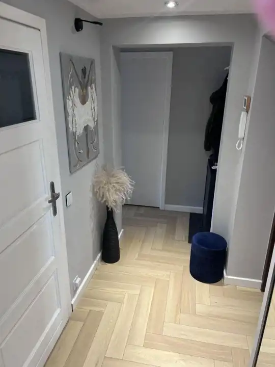 • nowe podłogi (elegancka jodełka w całym mieszkaniu)