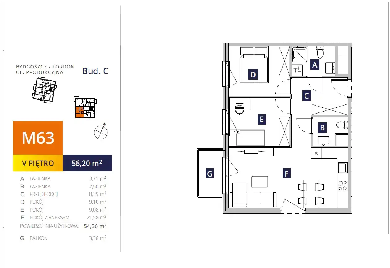 - Charakterystyka mieszkania 54.36 m2, 3 pokoje
