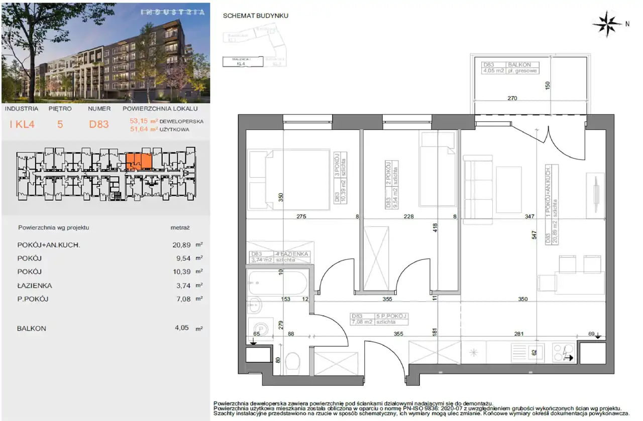 - Charakterystyka mieszkania 51.64 m2, 3 pokoje