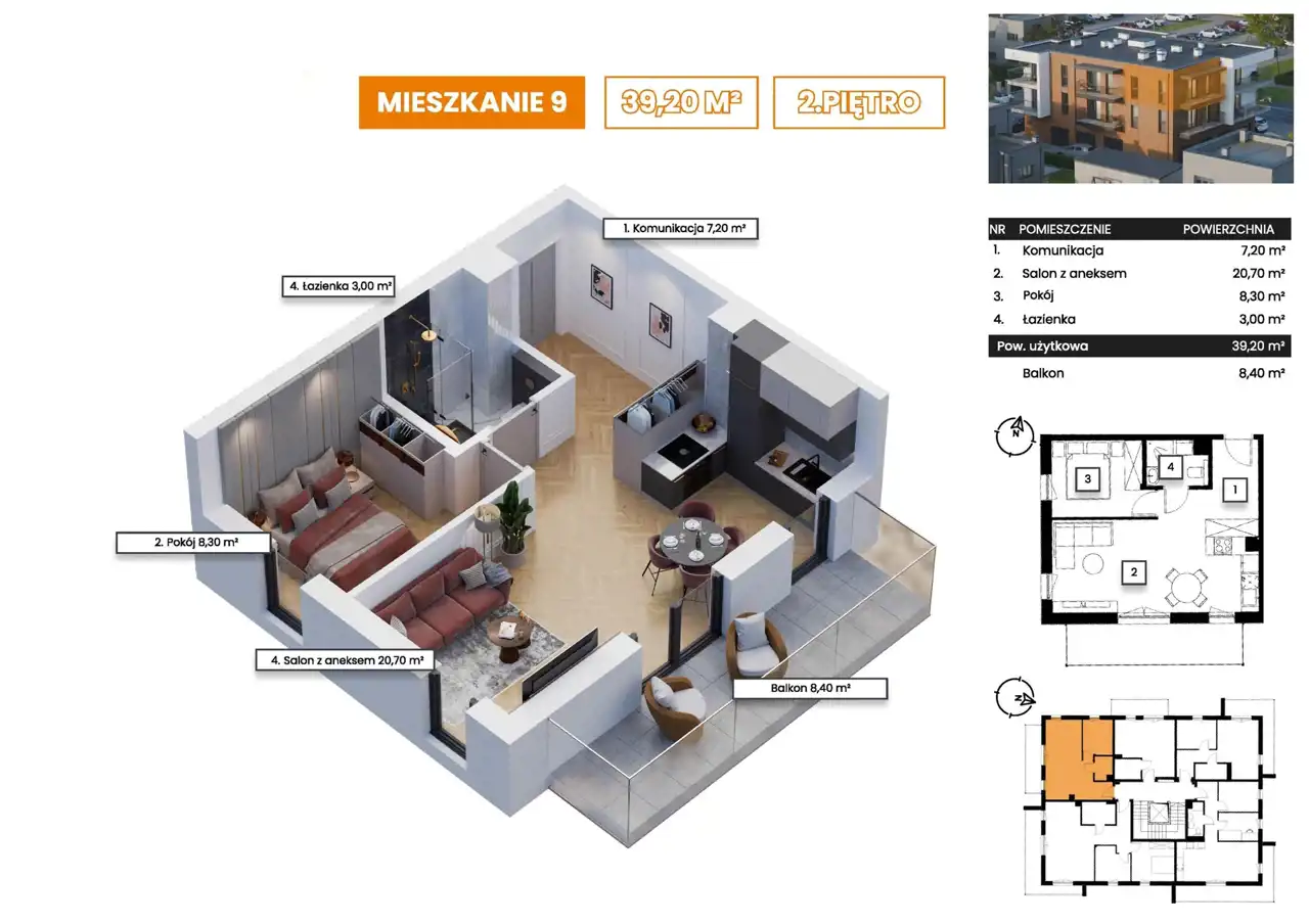 - Charakterystyka mieszkania 38.9 m2, 2 pokoje