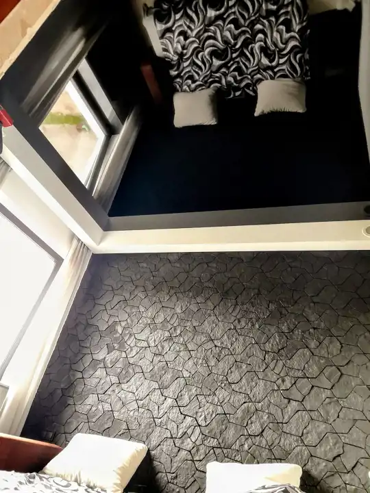 6. w mniejszej sypialni napinany sufit,