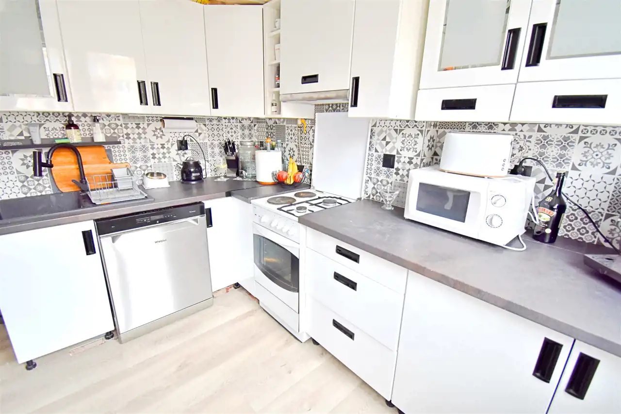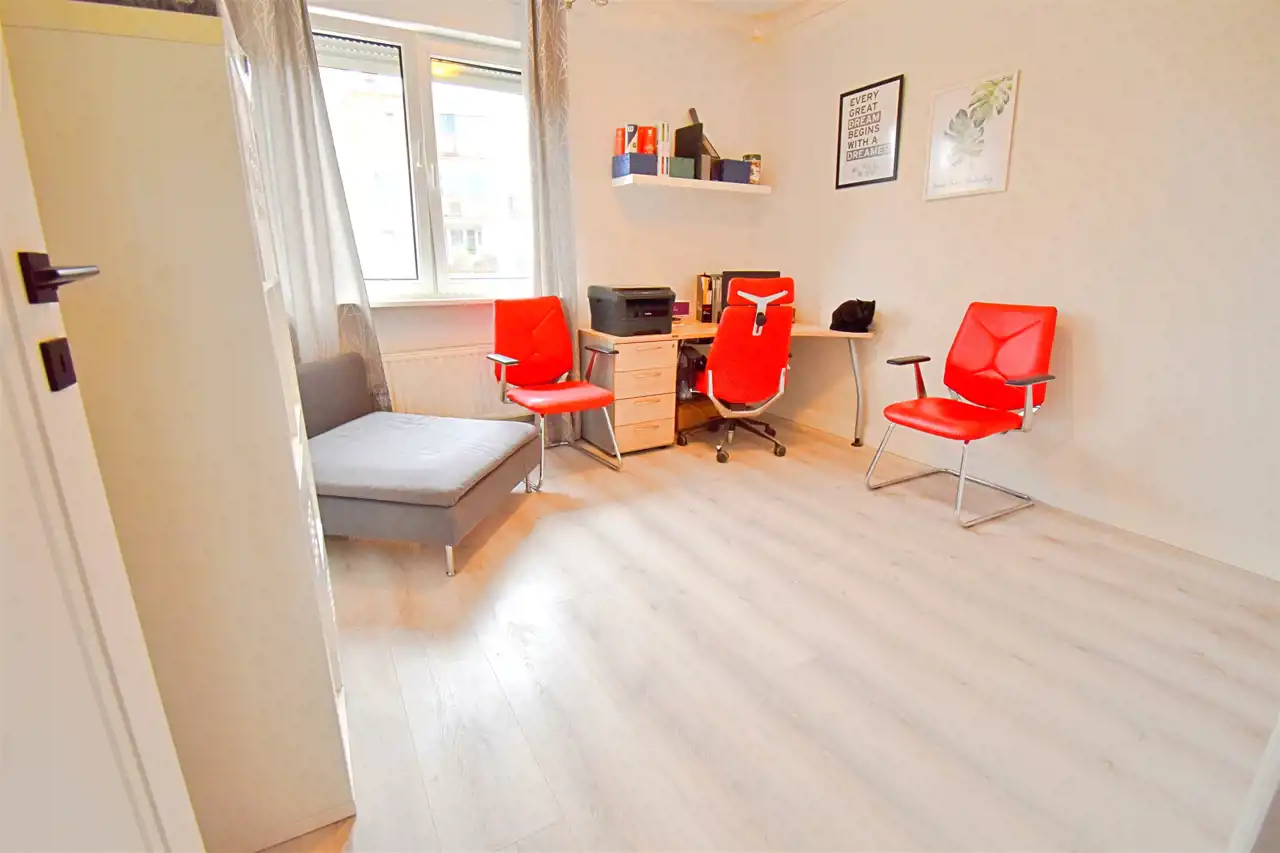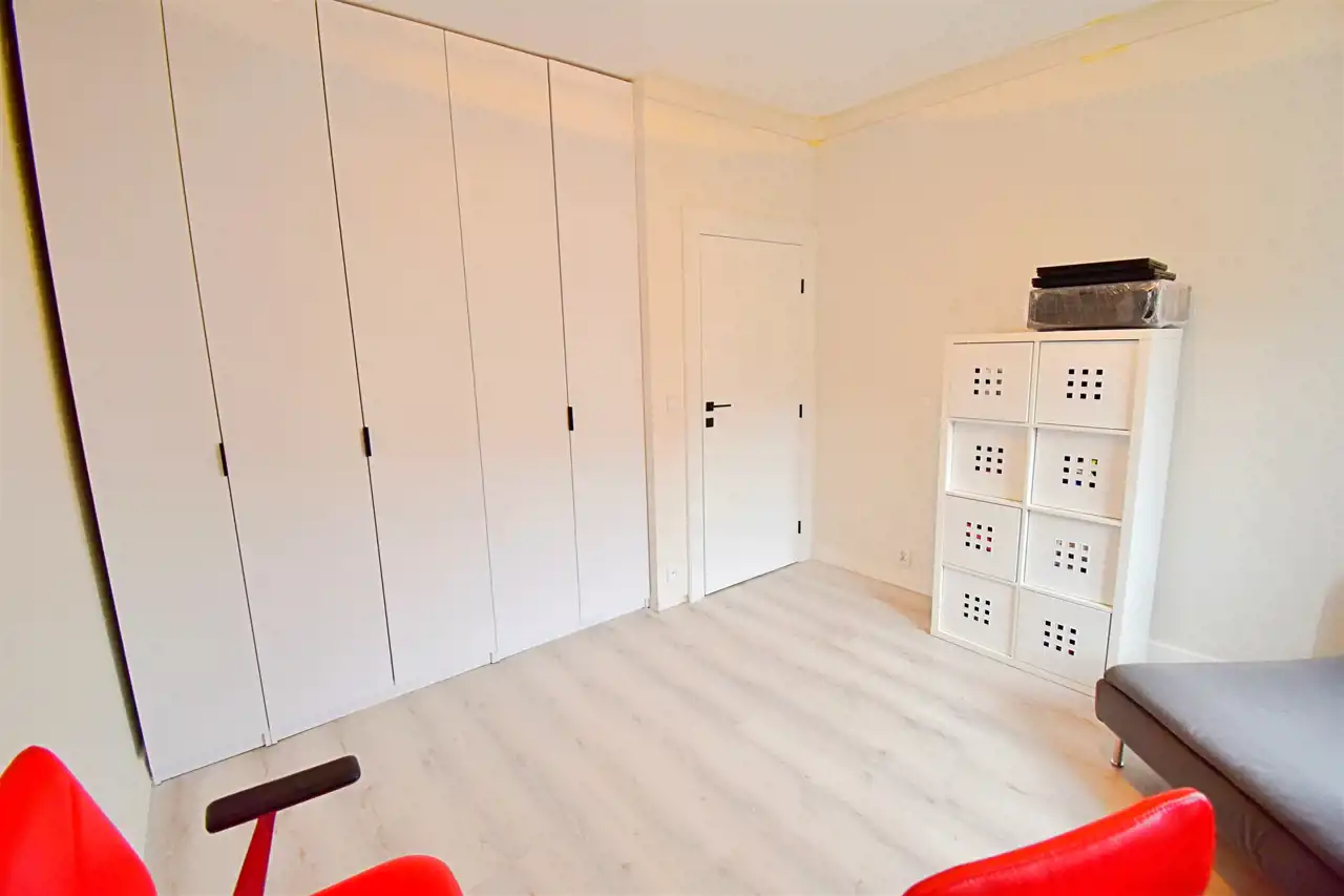 Lokal jest po generalnym remoncie podczas którego we wszystkich pokojach z wysoką starannością wykonano gładzie, położone zostały panele klasy premium firmy Parador. W przedpokoju i kuchni podłoga winylowa klasy premium o grubości 8 mm, z podkładem akustycznym zintegrowanym, drzwi wewnętrzne stylizowane w Ral 9003, białe w klasie premium, wersja bezprzylgowa. Drzwi wejściowe antywłamaniowe firmy Gerda. Kuchnia zyskała nowy look, nowe blaty, wyposażenie, zmywarka Whirpool, duża lodówka Grundig. Położone zostały płytki w pasie roboczym. ŁAzienka przeszła generalny remont dwa lata temu, podczas którego wymienione zostały również instalacje elektryczne i wodno-kanalizacyjne. Dodatkowo w całym mieszkaniu położono sztukaterię przysufitową oraz listwy podłogowe o wysokości 11,5 cm wykończone w RAL 9003, białe.