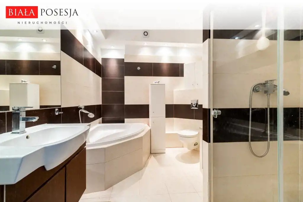 Piękna i duża łazienka z wc, dla entuzjastów kąpieli duża wanna oraz wygodny prysznic.