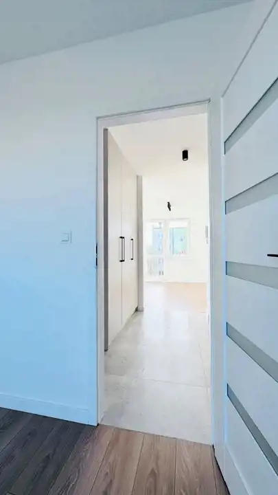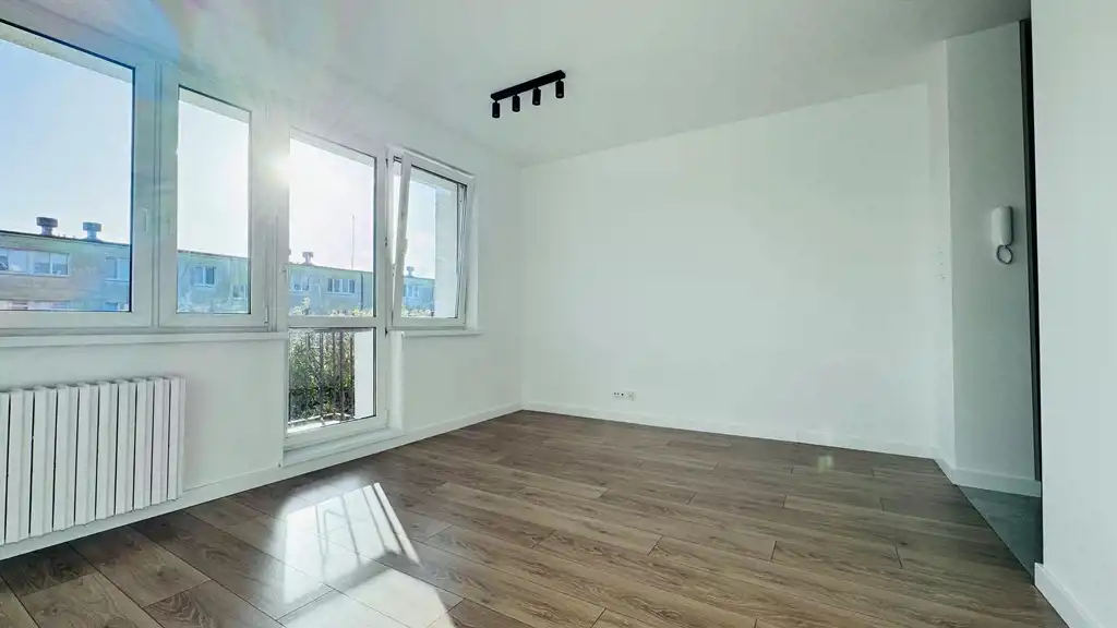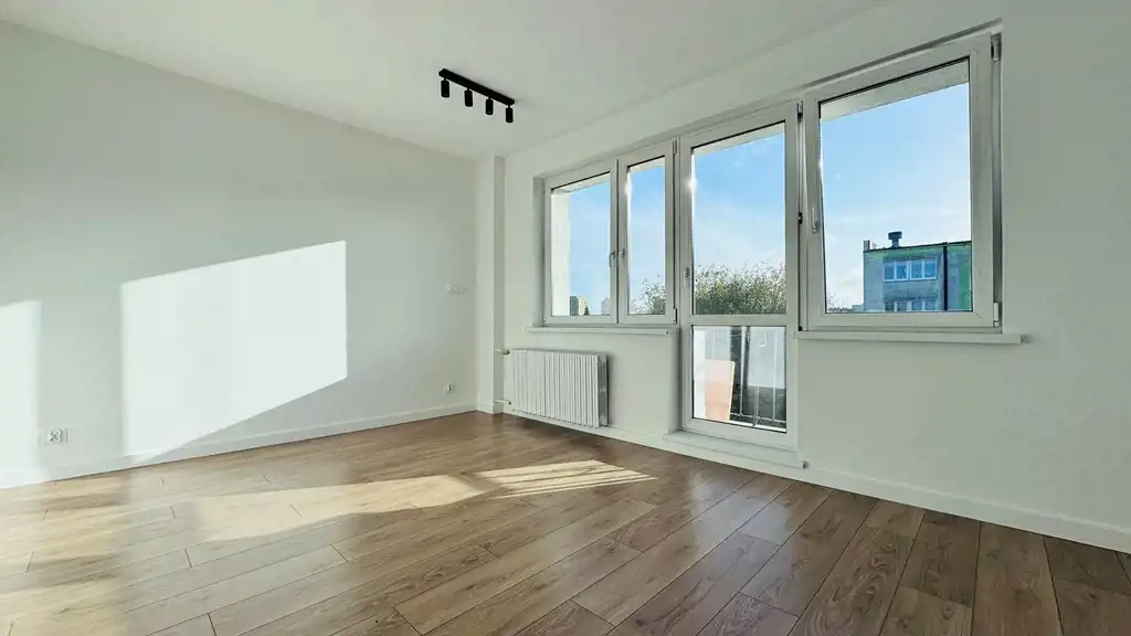 Mieszkanie przeszło generalny remont – wymieniono instalacje, położono gładzie i nowe podłogi, na ścianach świeża biel, a w kuchni i łazience modne gresy. Dzięki temu to wnętrze nie tylko prezentuje się nowocześnie, ale też gwarantuje spokój na lata.