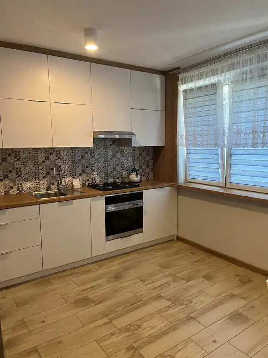 Wszystkie sprzęty nowe: płyta indukcyjna, okap kuchenny, zmywarka, piekarnik elektryczny.