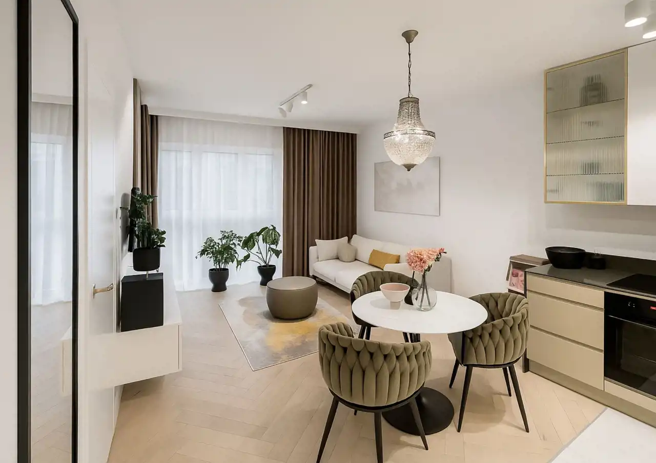 Mieszkanie zostało urządzone w nowoczesnym stylu, z wielką dbałością o jakość i funkcjonalność. Wnętrze jest gotowe do wprowadzenia, w pełni wyposażone.