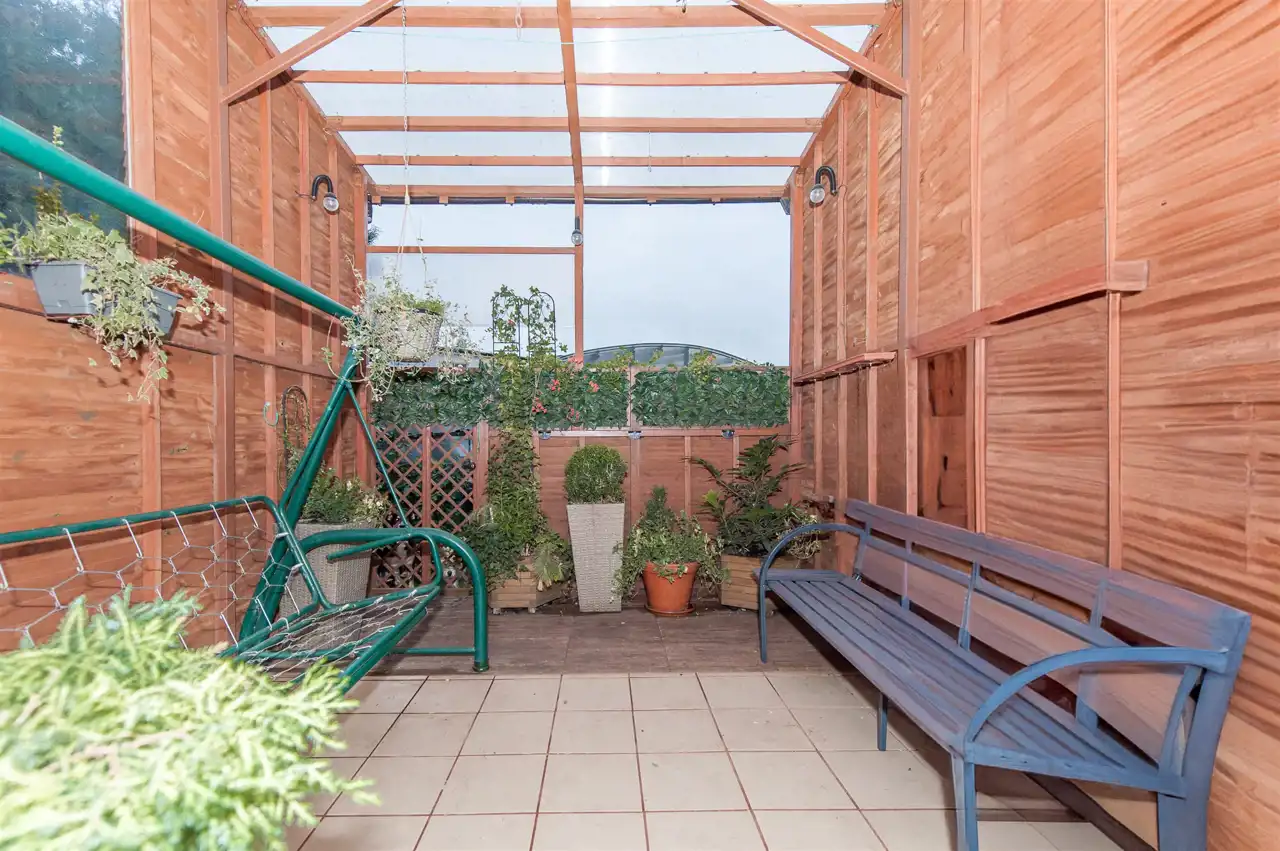 -Do mieszkania przylega zadaszony, oświetlony, obudowany drewnem taras (13,6m2) pokryty częściowo gresem a częściowo drewnem.