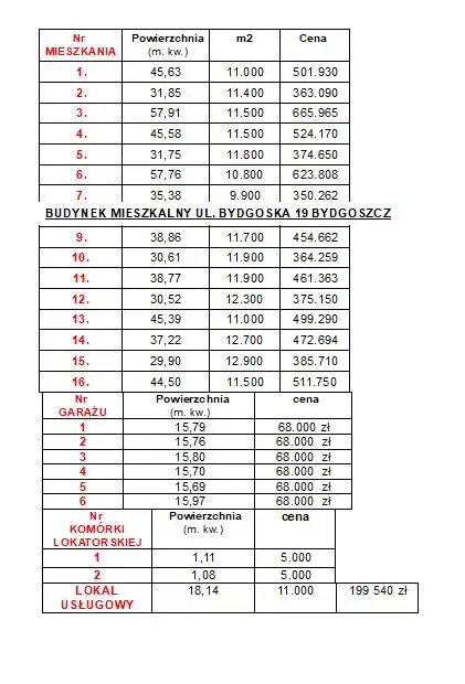 W galerii zdjęć cennik pozostałych mieszkań.