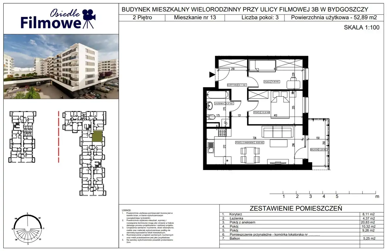 - Charakterystyka mieszkania 52.89 m2, 3 pokoje