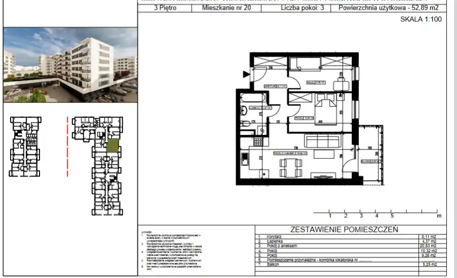 - Charakterystyka mieszkania 52.89 m2, 3 pokoje