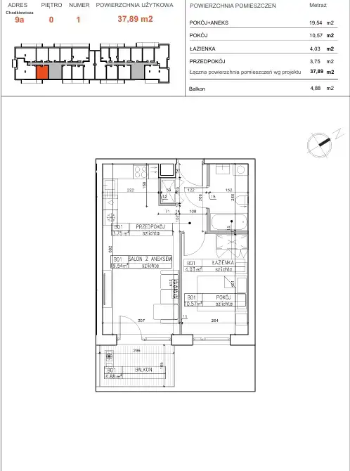 - Charakterystyka mieszkania 37.89 m2, 1 pokój