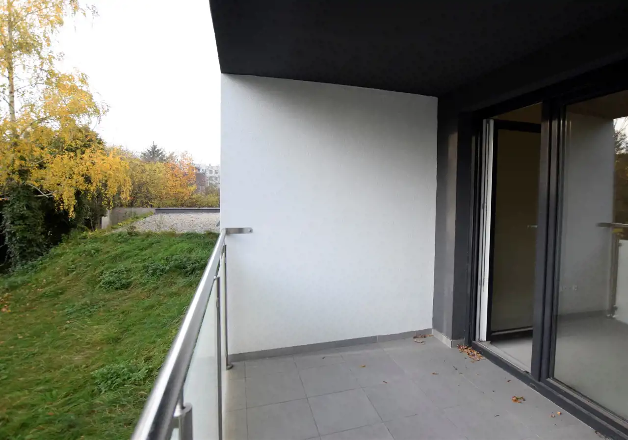 Mieszkanie jest dwustronne. Od strony południowo-zachodniej z salonu wychodzi się na duży balkon z widokiem na drzewa. Nic nie zakłóca sielskiego widoku. Spora sypialnia (14,40m2) to przestrzeń gdzie można zorganizować nie tylko miejsce wypoczynku ale też miejsce do pracy.