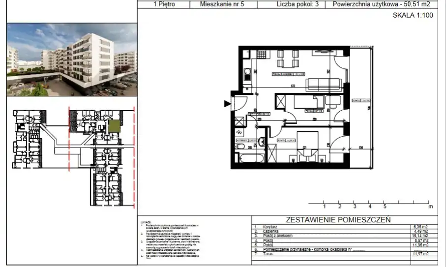 - Charakterystyka mieszkania 50.51 m2, 3 pokoje