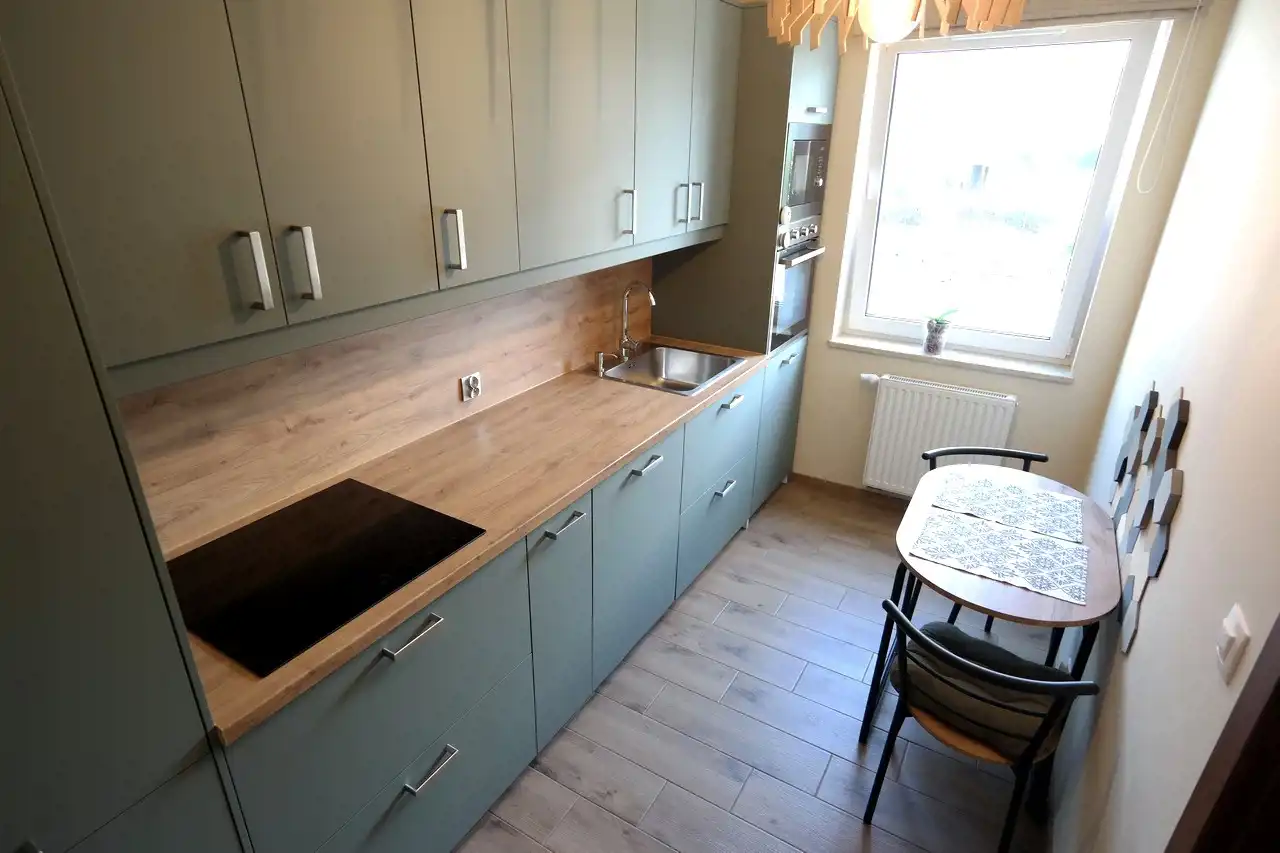 Mieszkanie z 2021 r. Zadbane. DO WPROWADZENIA ! Nowe okna PCV. Podwieszane sufity. Oświetlenie LED. Osobny pokój umeblowany. Sprzęt RTV, internet światłowód. Panele i gładzie. Oddzielna umeblowana kuchnia. Rolety w oknach. Nowa zabudowa i wyposażenie kuchni. W pokojach panele i gładzie. Łazienka z lustrem umywalka, pralka, prysznic z WC. Kafelki. Zabudowa kuchenna pod wymiar, kuchenka, płyta indukcyjna, okap, lodówka, zmywarka. Ciepła woda i ogrzewanie w czynszu. W przedpokoju kafle i gładzie. Duża szafa. Wyposażenie i meble do uzgodnienia. Pod budynkiem miejsce garażowe w cenie