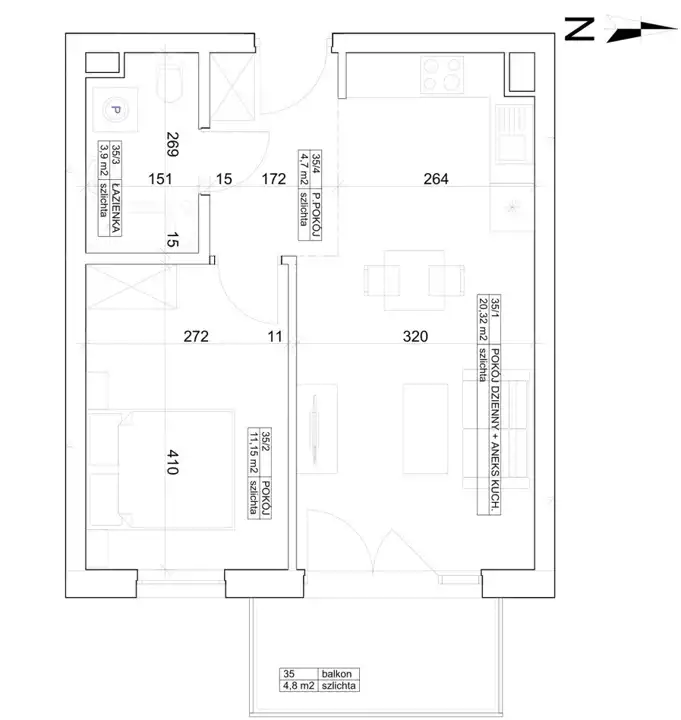 - Charakterystyka mieszkania 40.32 m2, 2 pokoje