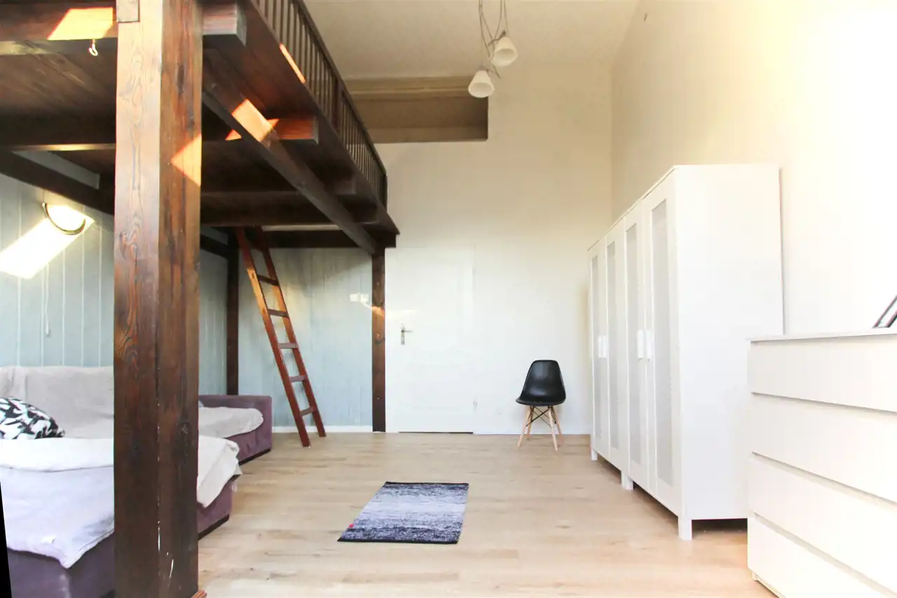 Lokal położony jest na ostatnim piętrze trzypiętrowej kamienicy.