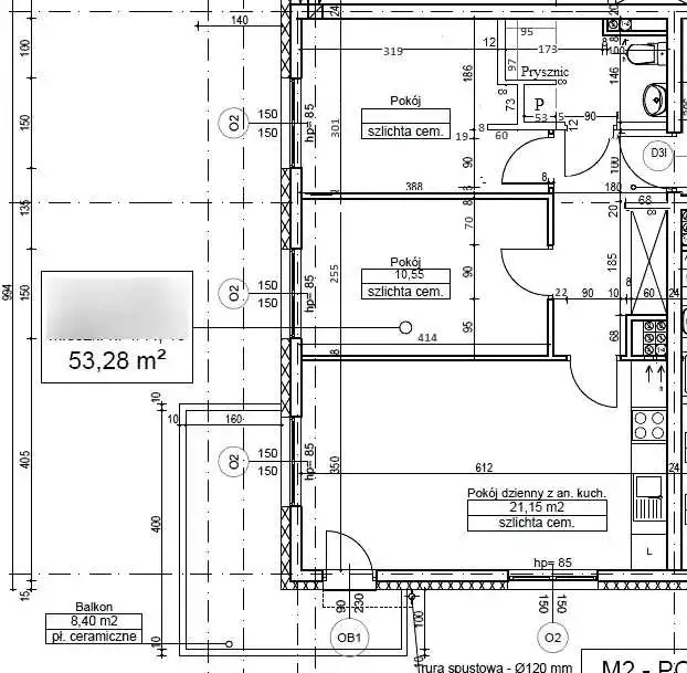 - Charakterystyka mieszkania 53.28 m2, 3 pokoje