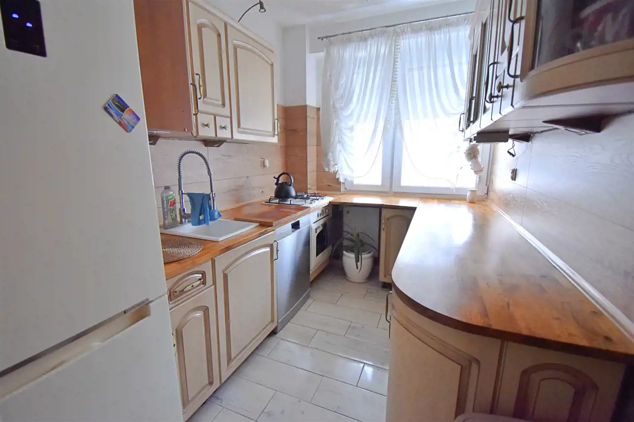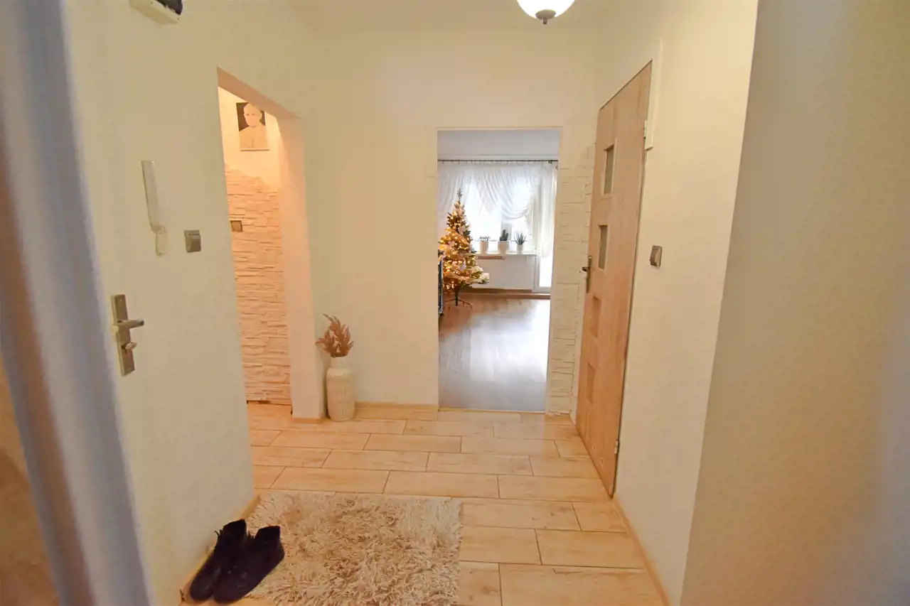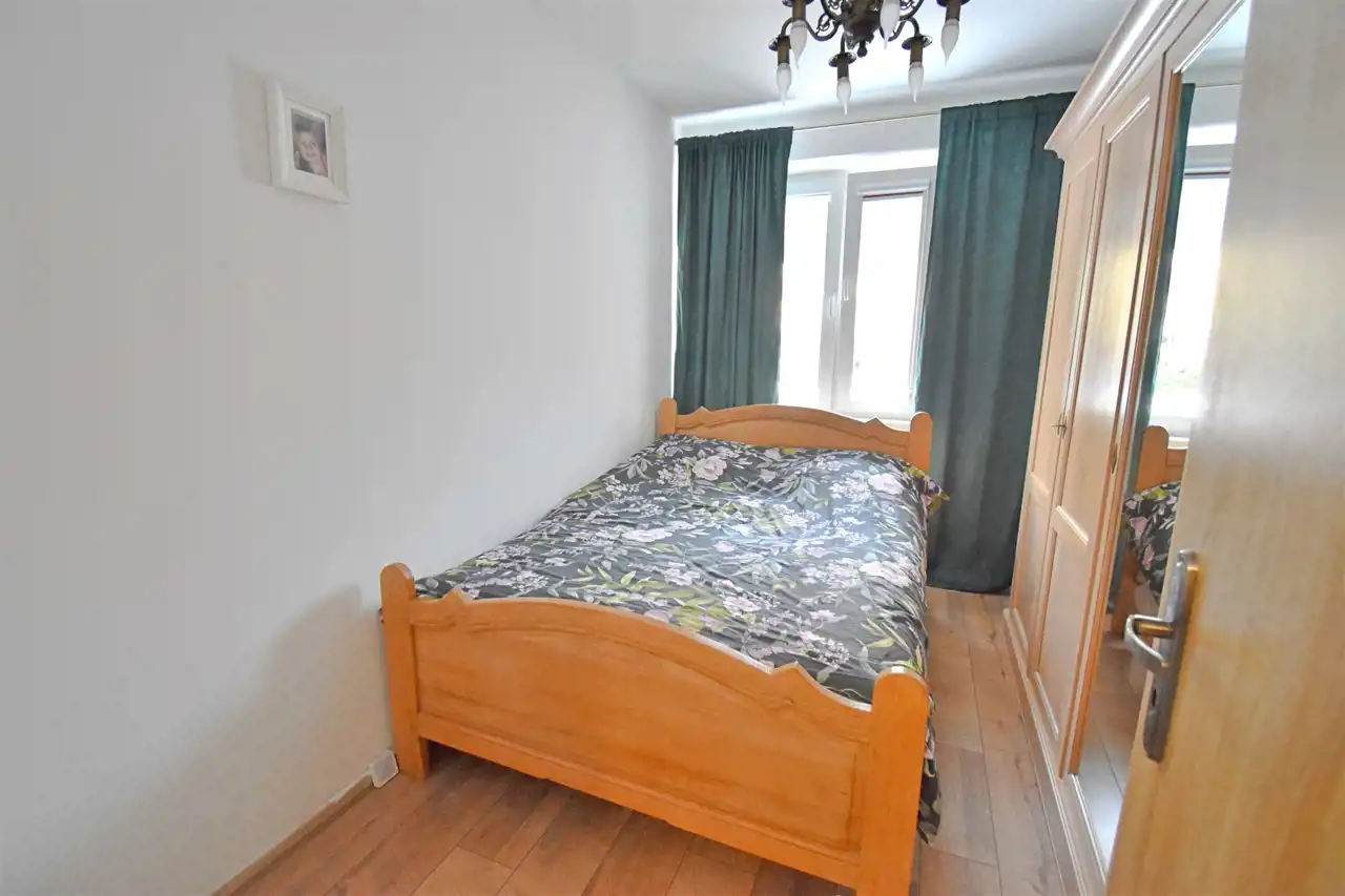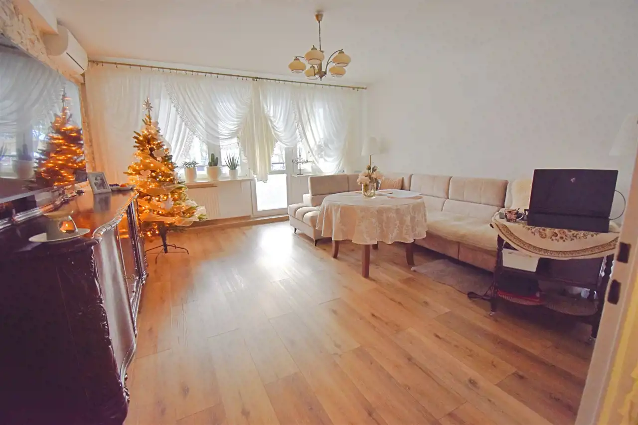 Mieszkanie ciepłe i słoneczne na parterze w czteropiętrowym budynku.Rozkładowy, dwustronny układ pomieszczeń.