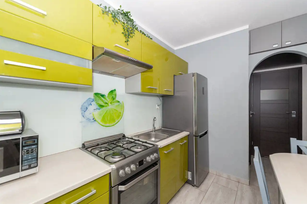 Odrębna kuchnia wyposażona w meble i sprzęty AGD sprawdzi się podczas przyrządzania rodzinnych posiłków.