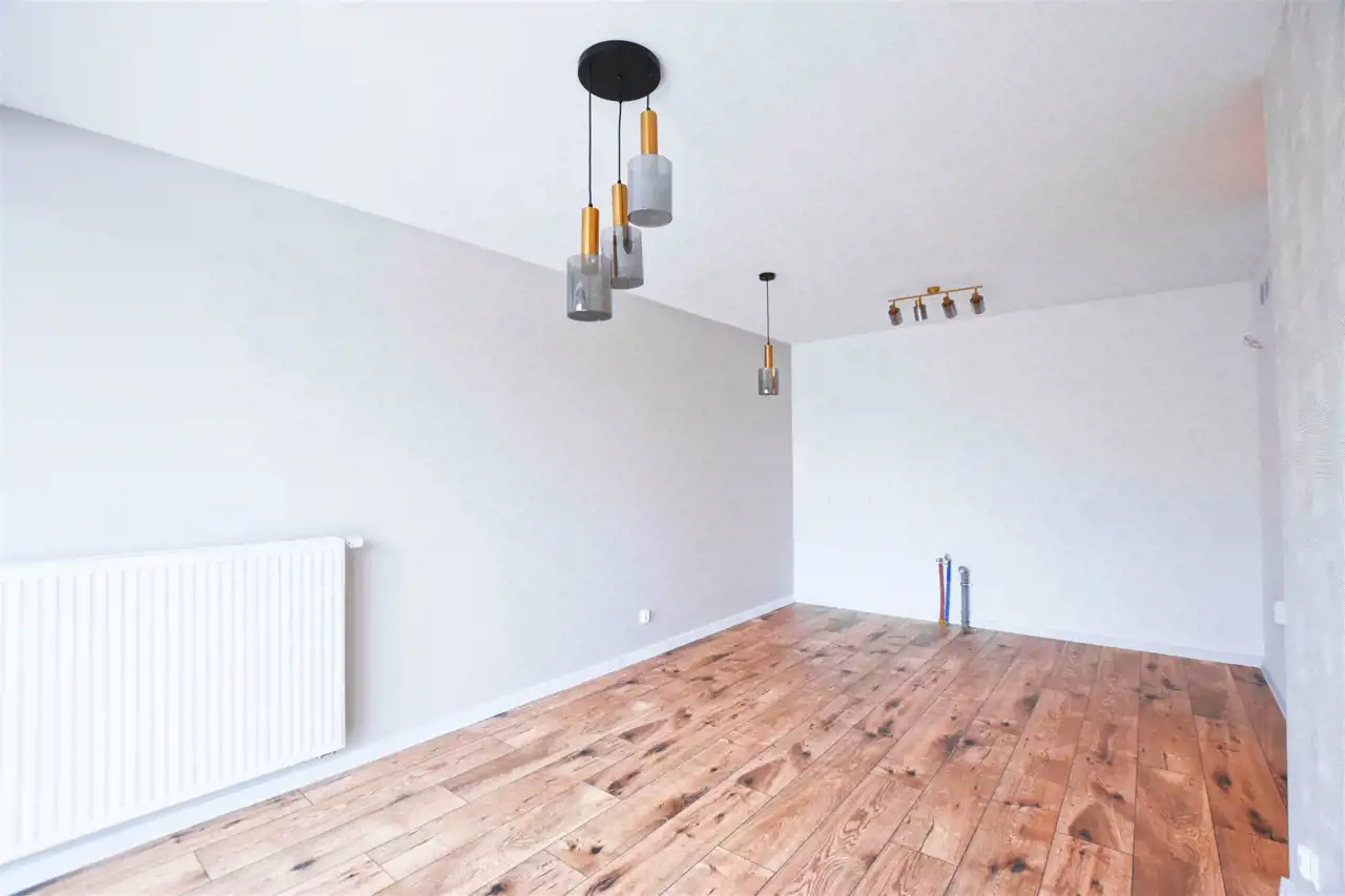Atrakcyjne wykończone mieszkanie, składające się z salonu z aneksem kuchennym oraz wyjściem na balon, 2 sypialni, łazienki, wc oraz przedpokoju w nowym bloku (2024 r.).