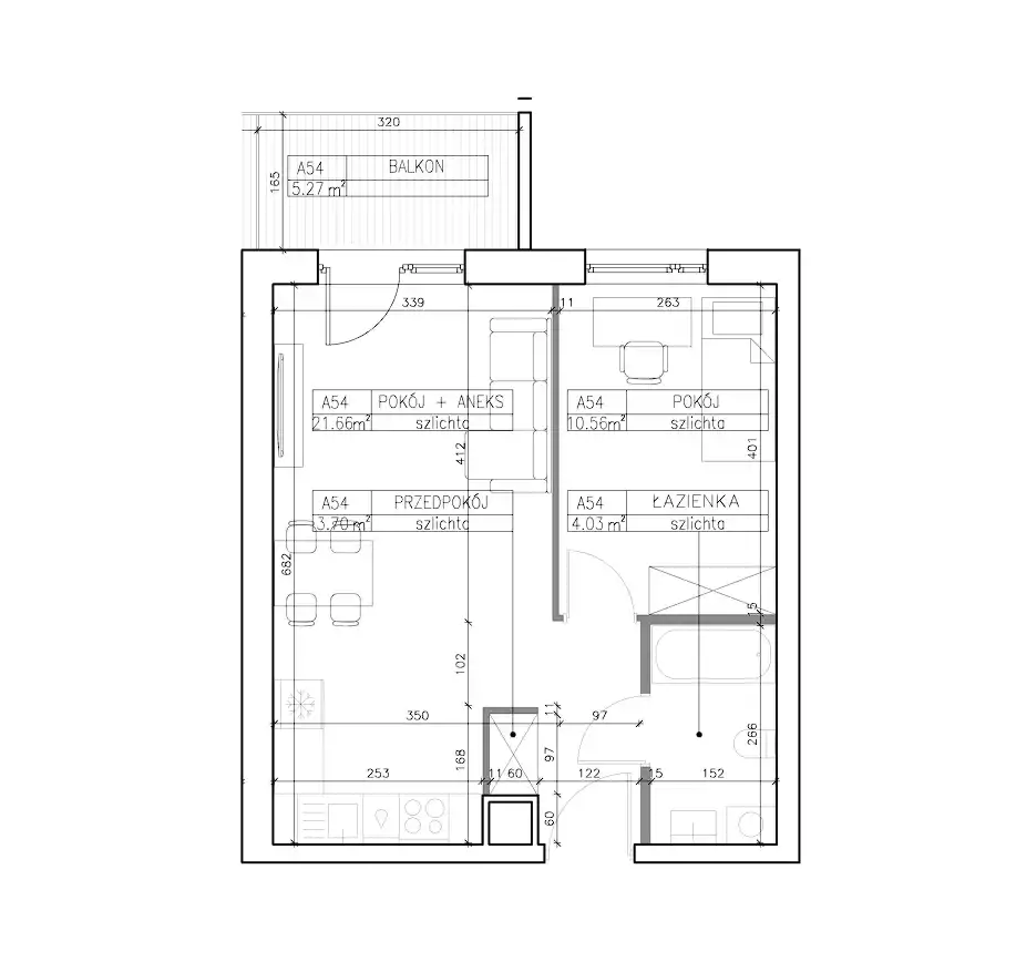 - Charakterystyka mieszkania 40.42 m2, 2 pokoje