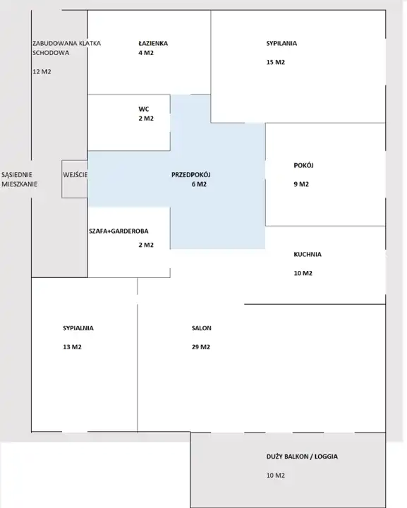 - przedpokój 6 m2 + 2m szafo-garderoba,