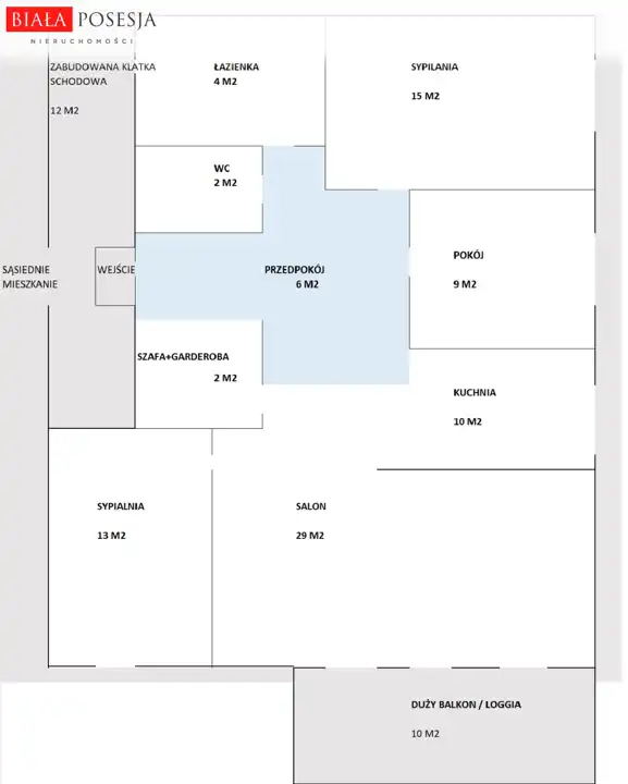 - salon 29 m2 z wyjściem na balkon/loggię – ok 10m2,