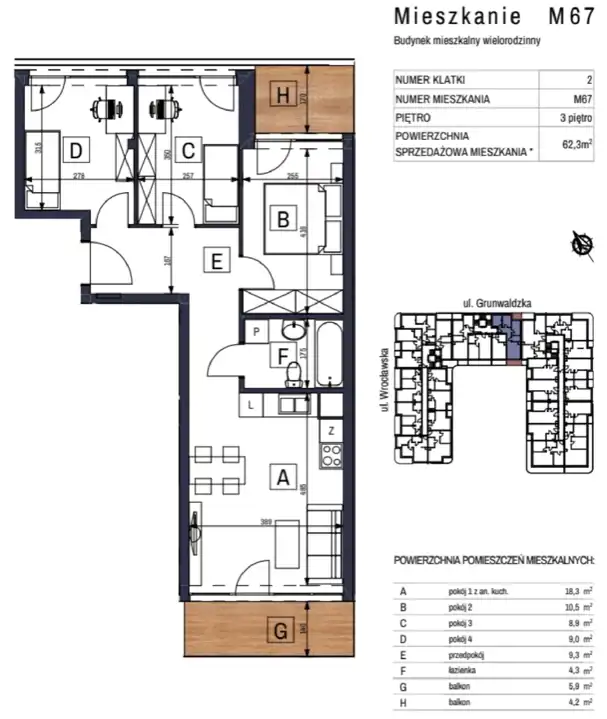 - Charakterystyka mieszkania 62.3 m2, 4 pokoje