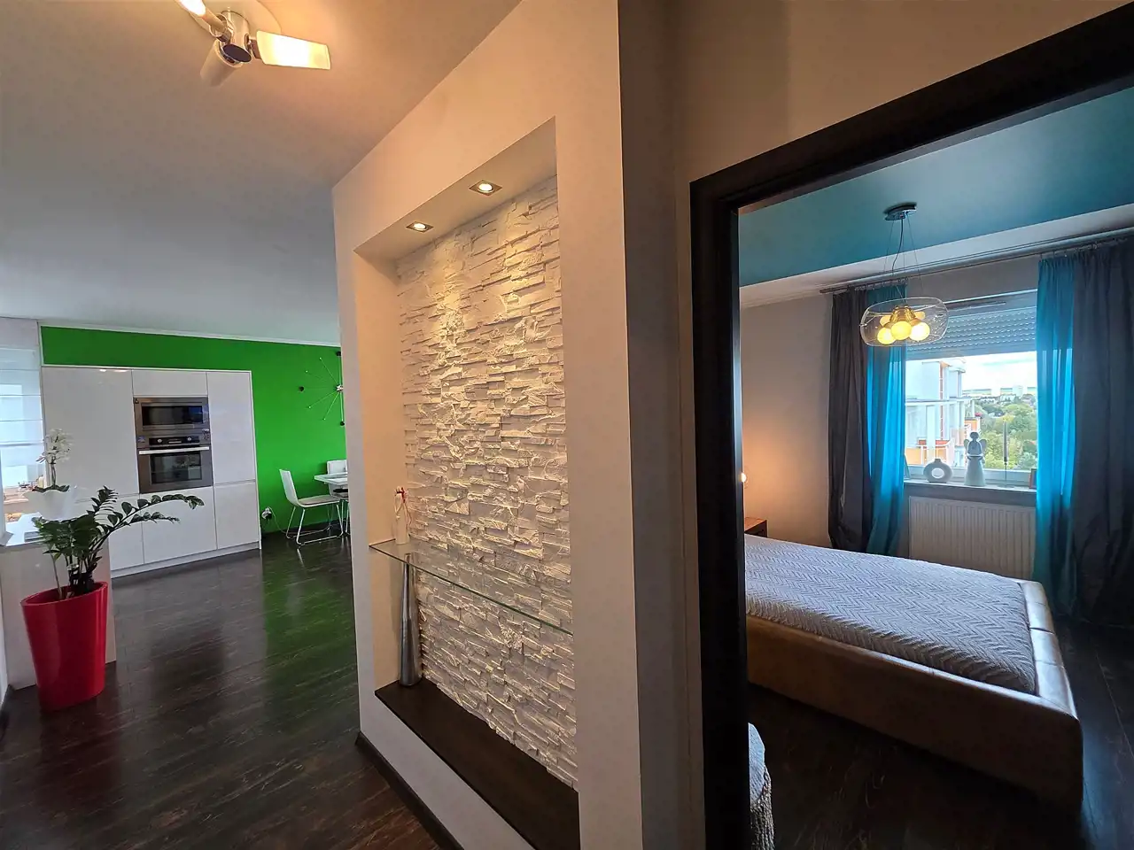 Salon z otwartą kuchnią - wyjście na duży balkon, przedpokój, przytulna sypialnia, łazienka z prysznicem