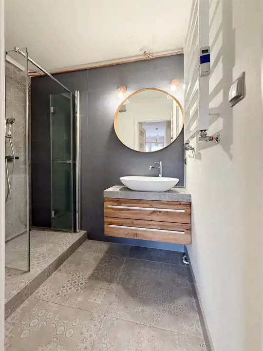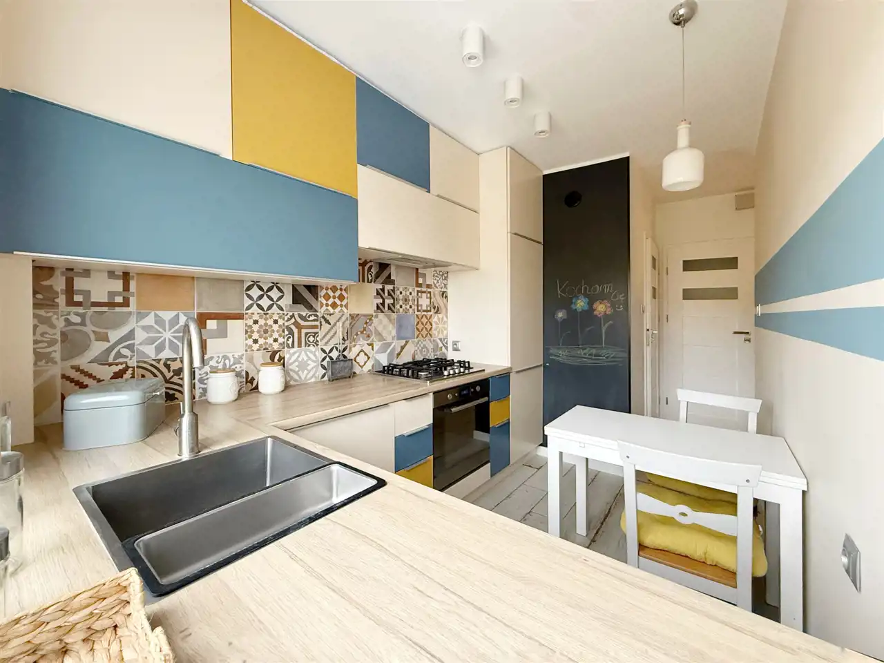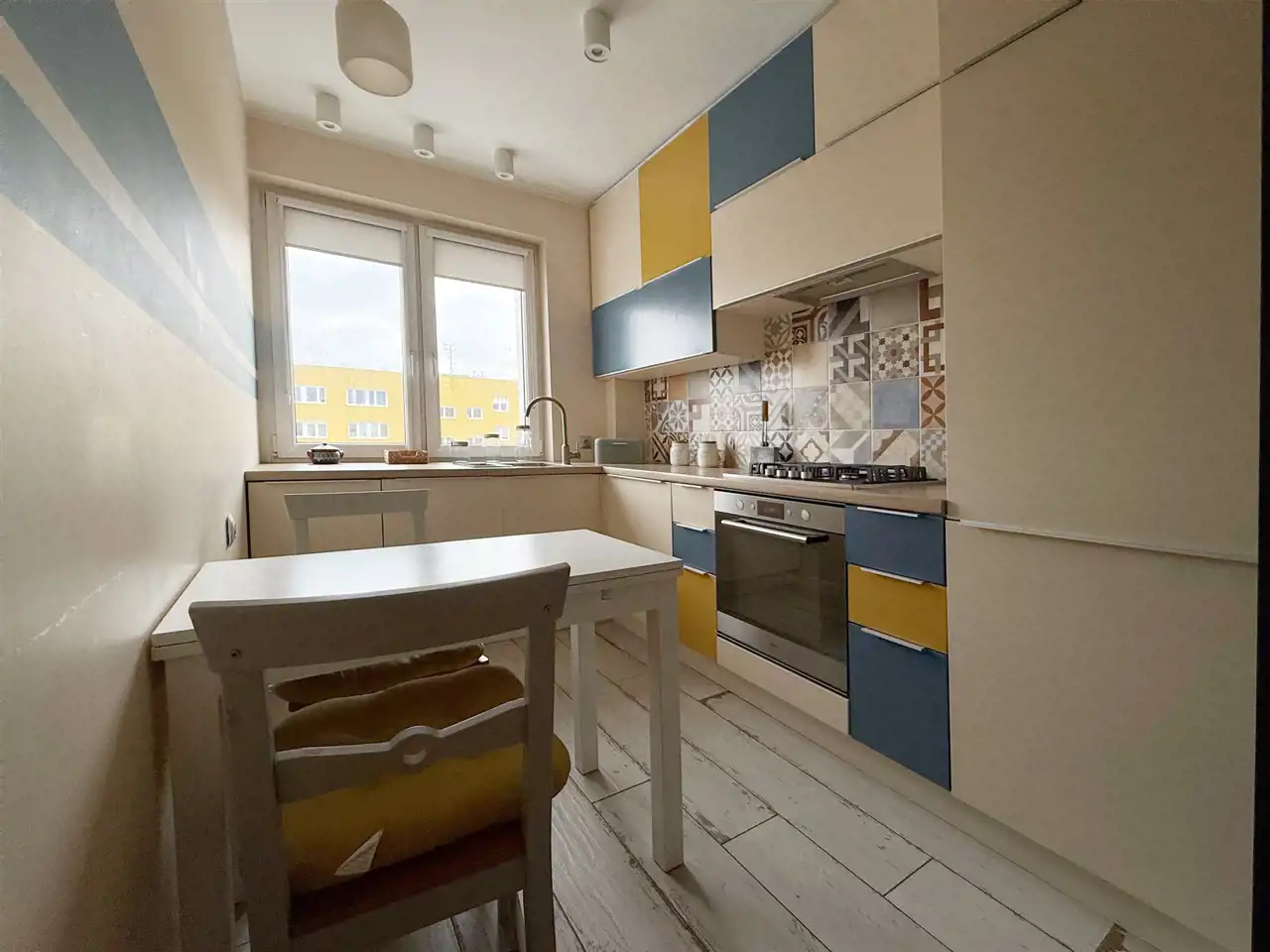 Mieszkanie przeszło generalny remont dwa lata temu. Kuchnia jest w pełni wyposażona w meble oraz sprzęt AGD: pralka, zmywarka, lodówka, kuchenka i piekarnik.