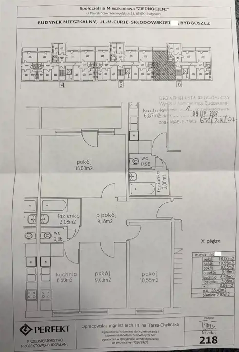 - Charakterystyka mieszkania 55.4 m2, 3 pokoje
