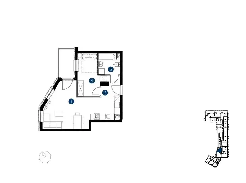 - Charakterystyka mieszkania 43.25 m2, 2 pokoje