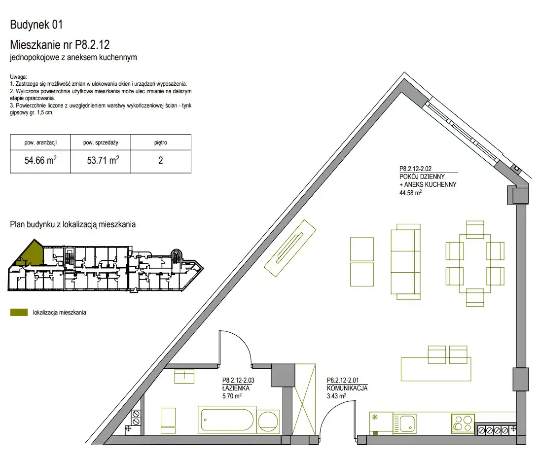 - Charakterystyka mieszkania 52.85 m2, 1 pokój