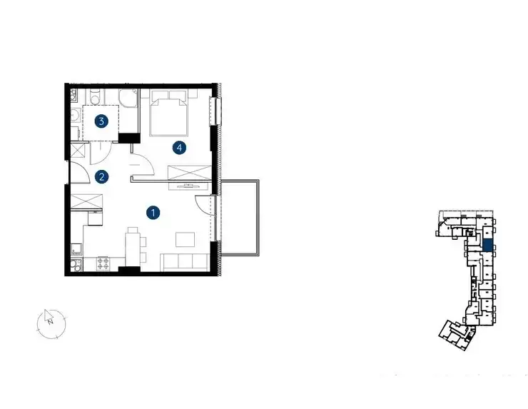 - Charakterystyka mieszkania 43.55 m2, 2 pokoje