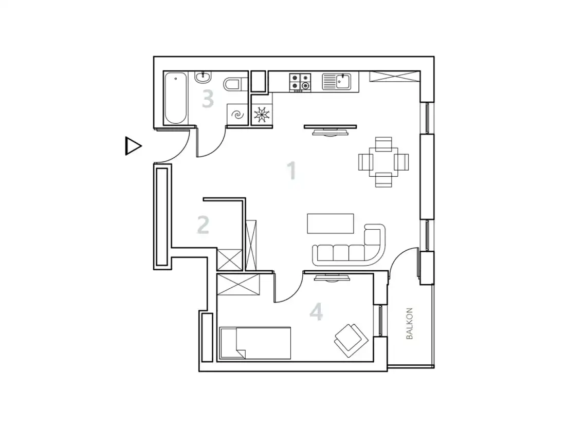 - Charakterystyka mieszkania 49.5 m2, 2 pokoje
