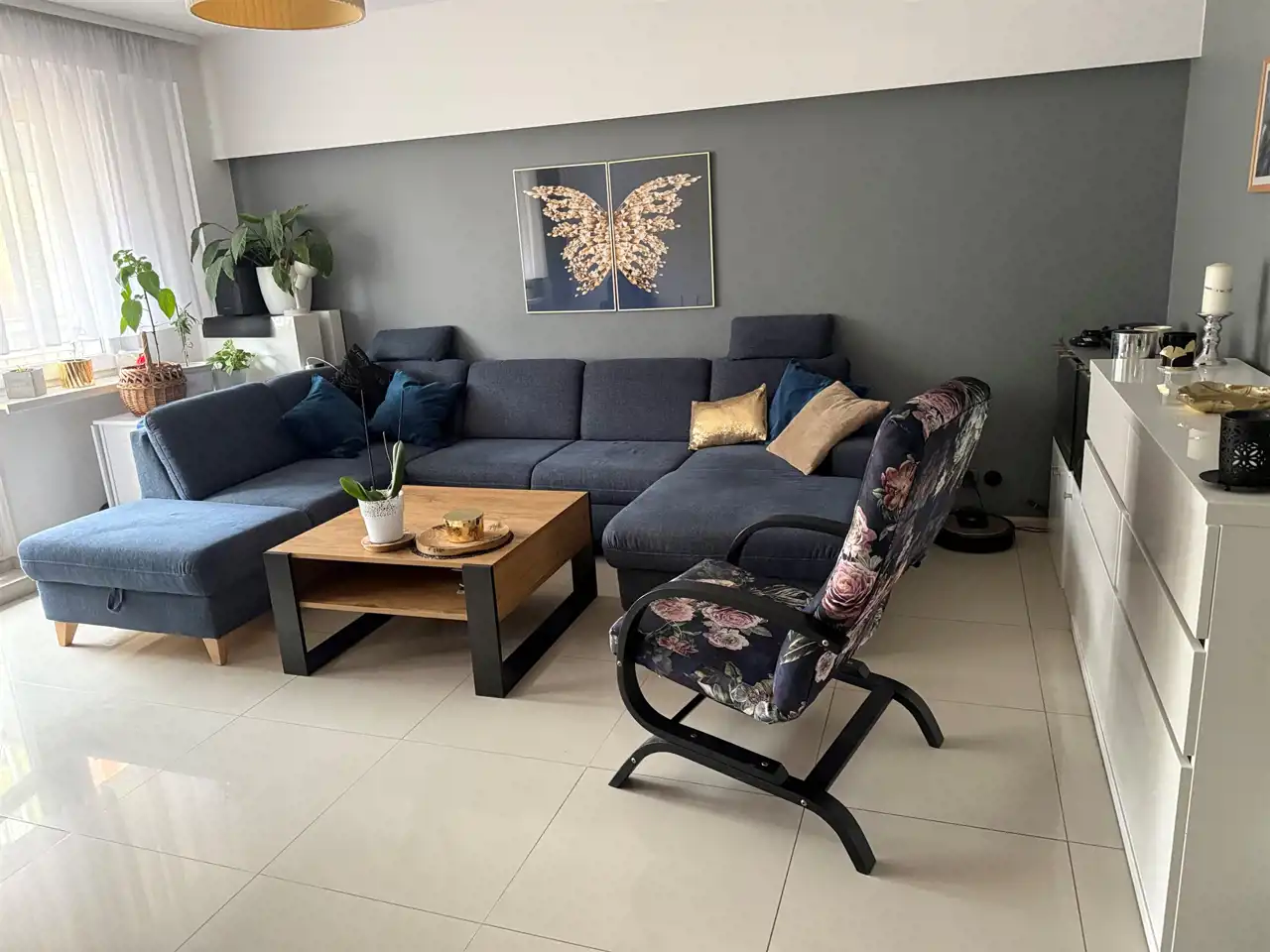 Już od pierwszego kroku widać, że to przestrzeń zaprojektowana z wyczuciem i konsekwencją. Jasne wnętrza, spójna kolorystyka i nowoczesne wykończenie tworzą atmosferę, w której po prostu dobrze się przebywa. To nie jest przypadkowe mieszkanie – to miejsce, które daje poczucie komfortu i gotowości do życia od razu po przekroczeniu progu.